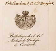 | 2012. gada 3. jūlijs, plkst. 12.07 | Wappen der Herzogin Anna Charlotte Dorothea von Kurland.jpg (fails) | 426 KB | Buks Artis | '''Annas Šarlotes Dorotejas fon Bīronas''' (''Anna Charlotte Dorothea von Biron'', 1761.-1821.), dzim. fon Mēdema (''von Medem'') - Kurzemes un Zemgales hercogienes ģerbonis viņas ekslibrī. (''Herzog August Bibliothek; Berlepsch Exlibris T. I, S. 27 | 1 | |