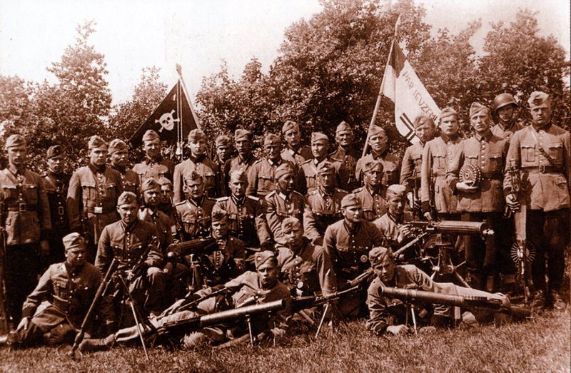 - Vācijas okupācijas varas kārtības palīgpolicijas (Ordnungs–Hilfspolizei) 273. bataljona vīri.