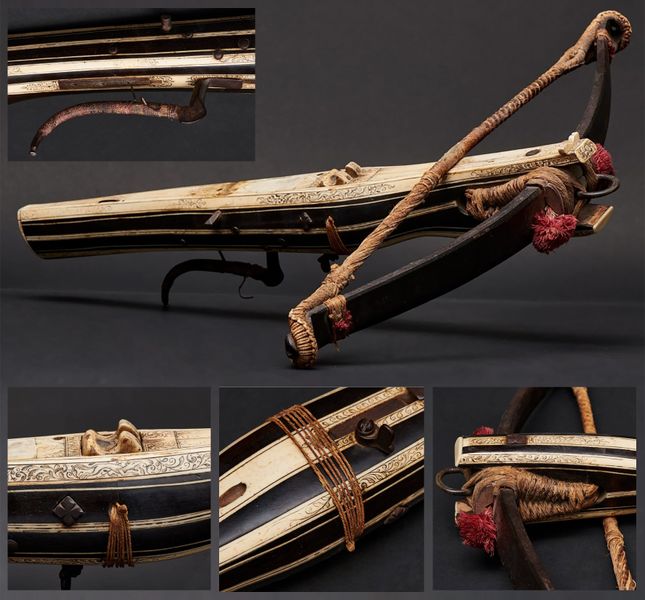 - Arbalets, garums 62 cm, uz tērauda loka Nirnbergas ieročmeistaru ģildes zīmogs.