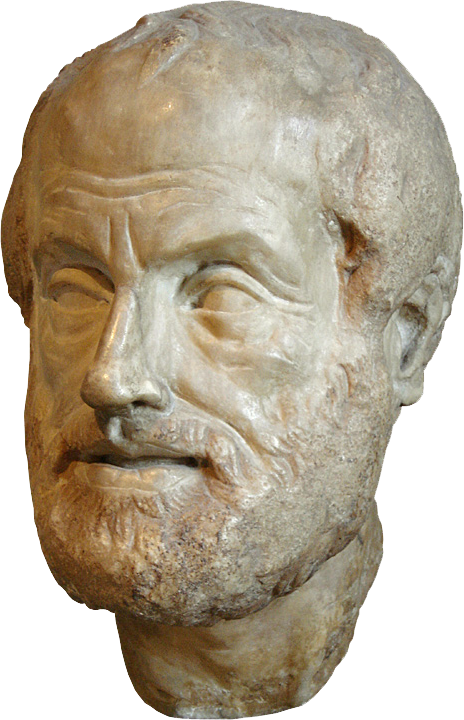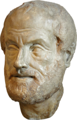 Portrait of Aristoteles. Pentelic marble, copy of the Imperial Period (1st or 2nd century) of a lost bronze sculpture made by Lysippos. Della Porta Collection then Borghese Collection; purchased in 1807. Louvre museum, department of Greek, Roman and Etruscan Antiquities, Sully, ground floor, room 17.