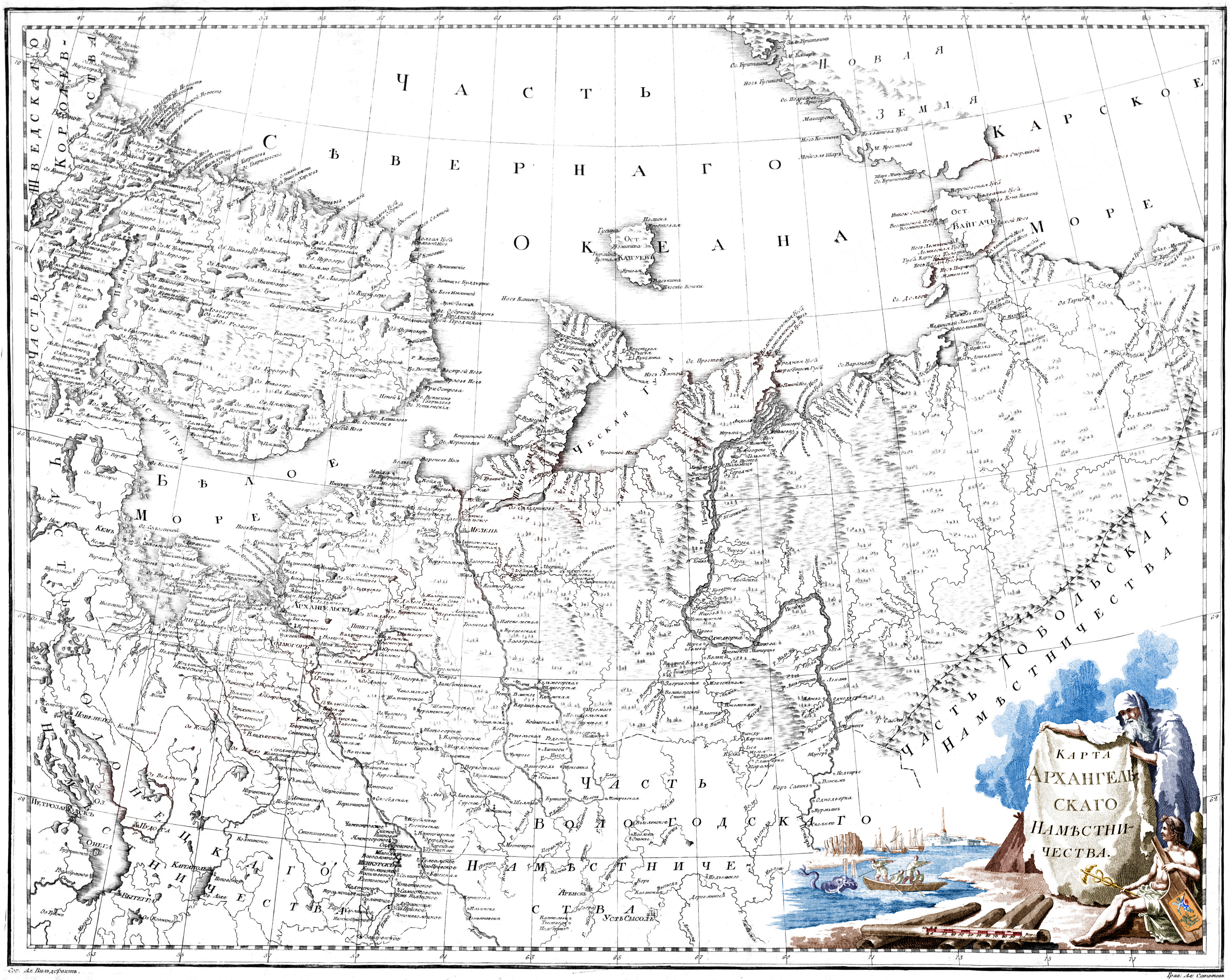 Arhangeļskas vietniecības karte (1792.). Avots: http://www.redkie.ru/map/Arkh_1792.jpg