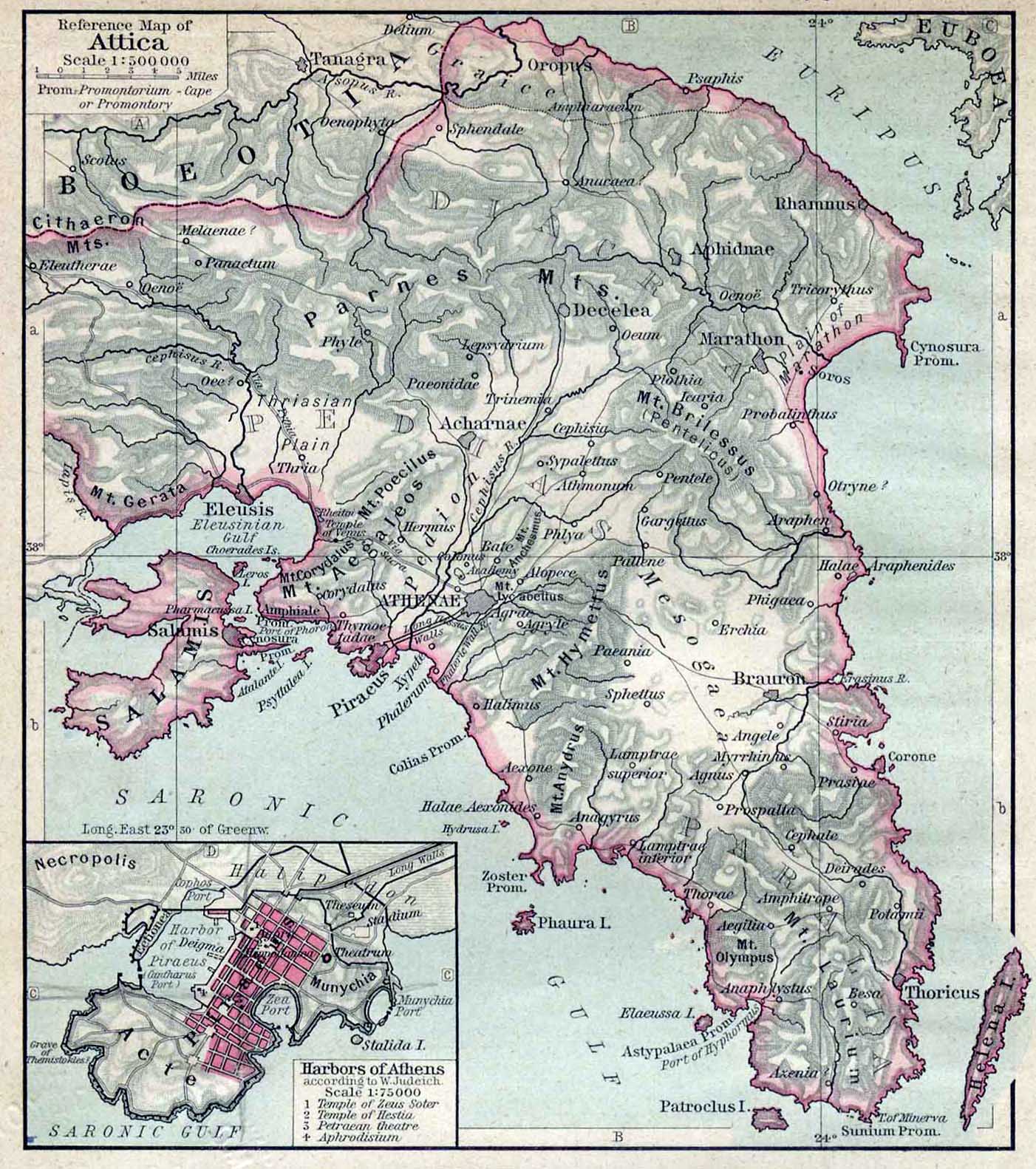 Harbors of Athens. From The Historical Atlas by William R. Shepherd, 1923.