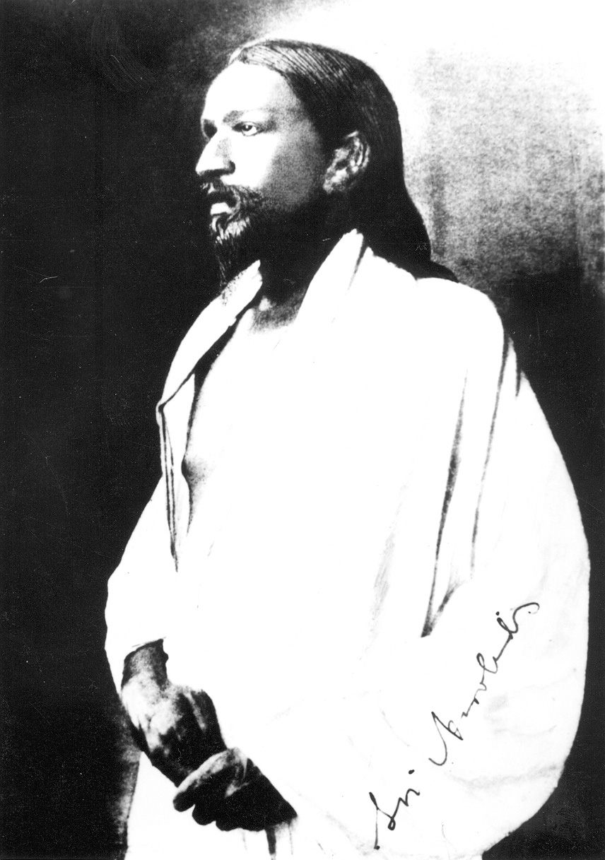 Aurobindo Akroids Gošs jeb Šrī Aurobindo (Aurobindo Akroyd Ghosh, Sri Aurobindo, 1872.-1950.) - filosofs, politiķis, t.s. "integrālās vedantas" jeb integrālās jogas pamatlicējs, viens no indiešu nacionālās atbrīvošanās kustības radikālā spārna līderiem. Attēls no www.garbhayoga.com