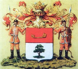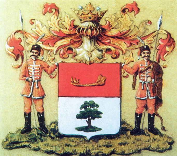 Bakuņinu dzimtas ģerbonis (pēc 1677.g.) Avots: Сысоева B. Бакунины. - Созвездие, Тверь, 2002, с. 144