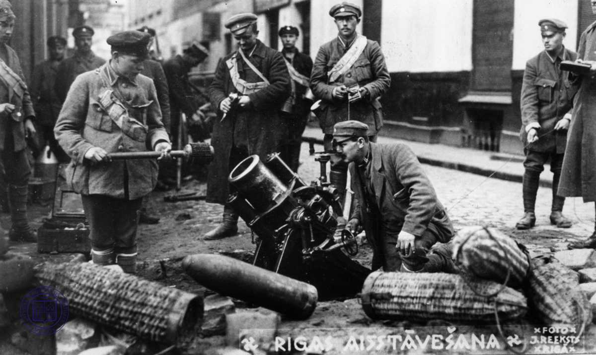 - Latvijas armijas karavīri Rīgā, Daugavmalā bermontiādes laikā.