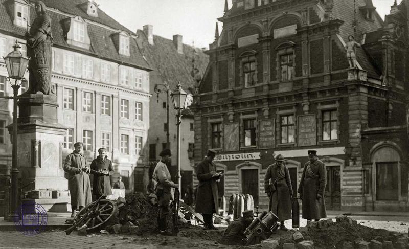 - Latvijas armijas karavīri Rātslaukumā bermontiādes laikā.
