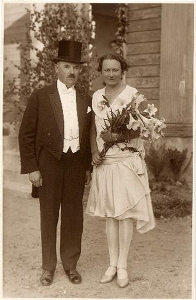 Eduards Bīriņš ar sievu Lidiju Bīriņu. Otrā pusē veltījums: “Mīļai atmiņai R. Egles kgam [Rūdolfam Eglem]”. 1929. gads 9. jūnijs, Sigulda. Fotogrāfs: Otto Lessiņš. 13,2x8,5 cm. Latvijas Akadēmiskā bibliotēka un Rakstniecības, teātra un mūzikas muzejs. Inventāra Nr.: LABR R32405-3-6. Topogrāfija/Šifrs: Iz262-3-6.