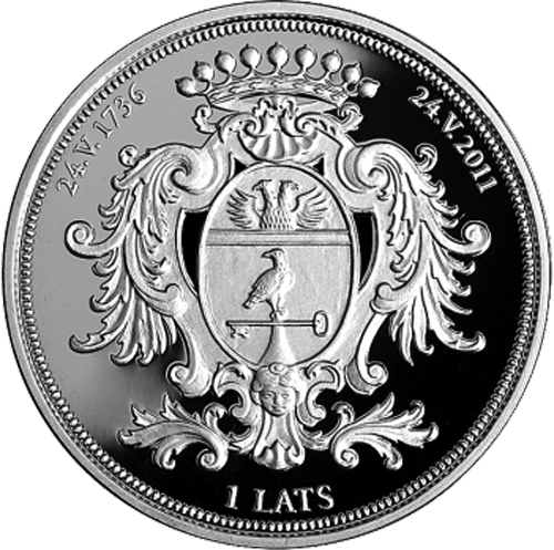 - Grāfu Bīronu ģerbonis mūsdienu Latvijas Republikas monētā (nomināls: 1 lats), reverss.
