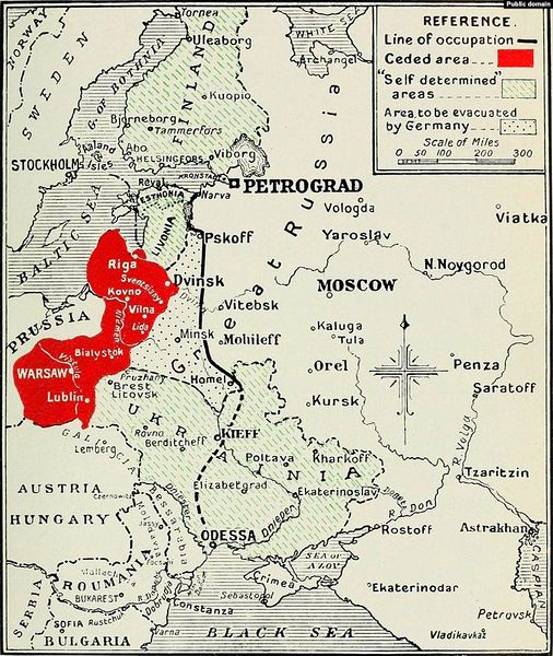 - Brestas kapitulācijas akta karte ar teritorijām, no kurām Krievija atsakās.