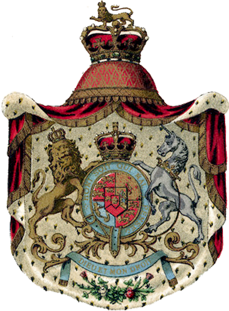 Illustration of the Royal Coat of Arms of the United Kingdom of Great Britain and Ireland.