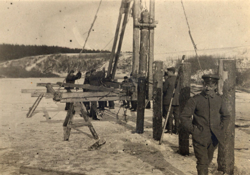 | tagadējais | 2012. gada 27. augusts, plkst. 14.12 | 1 050 × 737 (629 KB) | Buks Artis (Diskusija | devums) | * Landesvēra (''Baltische Landeswehr'' oder ''Die Lettländische Landeswehr'') sapieri būvē tiltu pār Ventas upi pie Nīgrandes. * Datējums: 1919. gada marts. * Avots: http://gmic.co.uk/index.php/topic/54280-12-pionier-bataillon-photo-album-of-an-off |