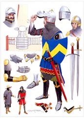 - Avots: Christopher Gravett. English Medieval Knight 1300-1400. - Osprey Publishing, 2002 - 64 p. ISBN 9781841761459
