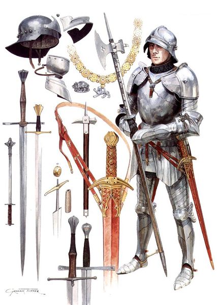 - Avots: Christopher Gravett. English Medieval Knight 14300-1500. - Osprey Publishing, 2002 - 64 p. ISBN 9781841761466