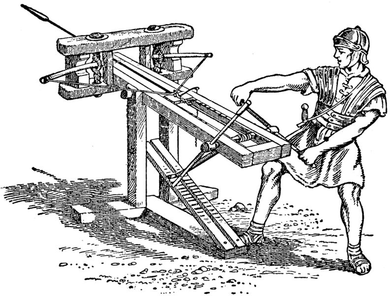 - Klasiskā romiešu katapulta, mūsdienu rekonstrukcija.