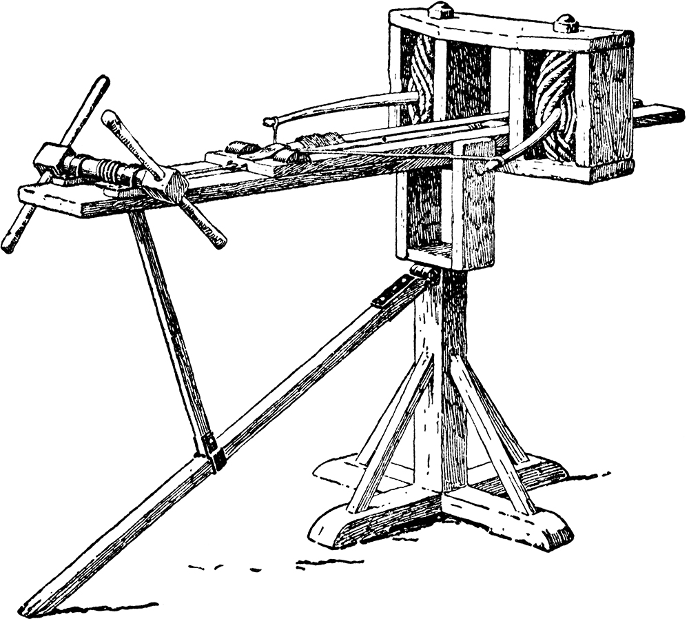 - Romiešu katapulta, mūsdienu rekonstrukcija.