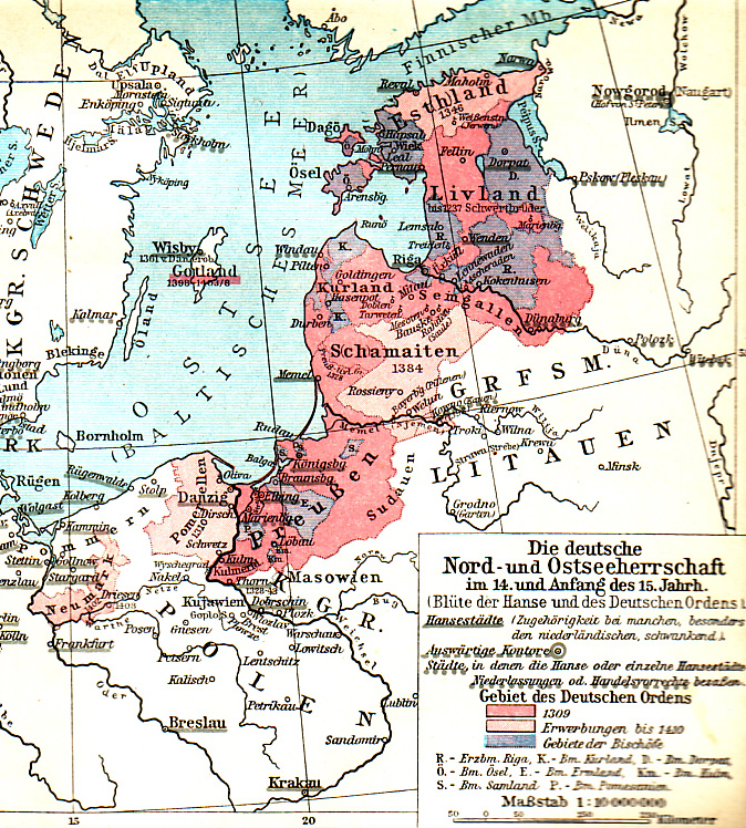 Teitoņu ordeņa valsts karte. Attēls no: http://conflicts.rem33.com/images/deut/drang.htm
