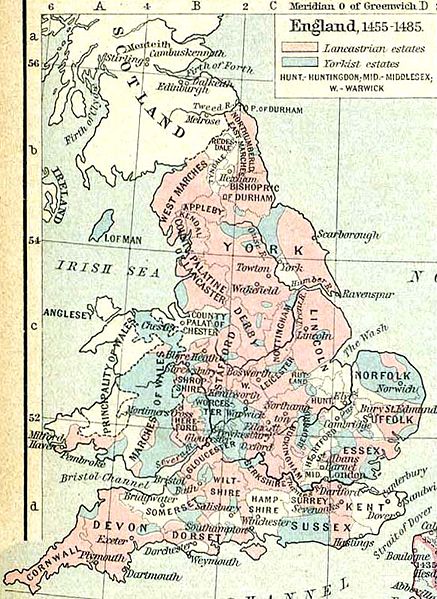 Anglija 1455.-1485. g. Attēls no: http://www.lib.utexas.edu/maps/historical/shepherd/england_france_1455_1494.jpg