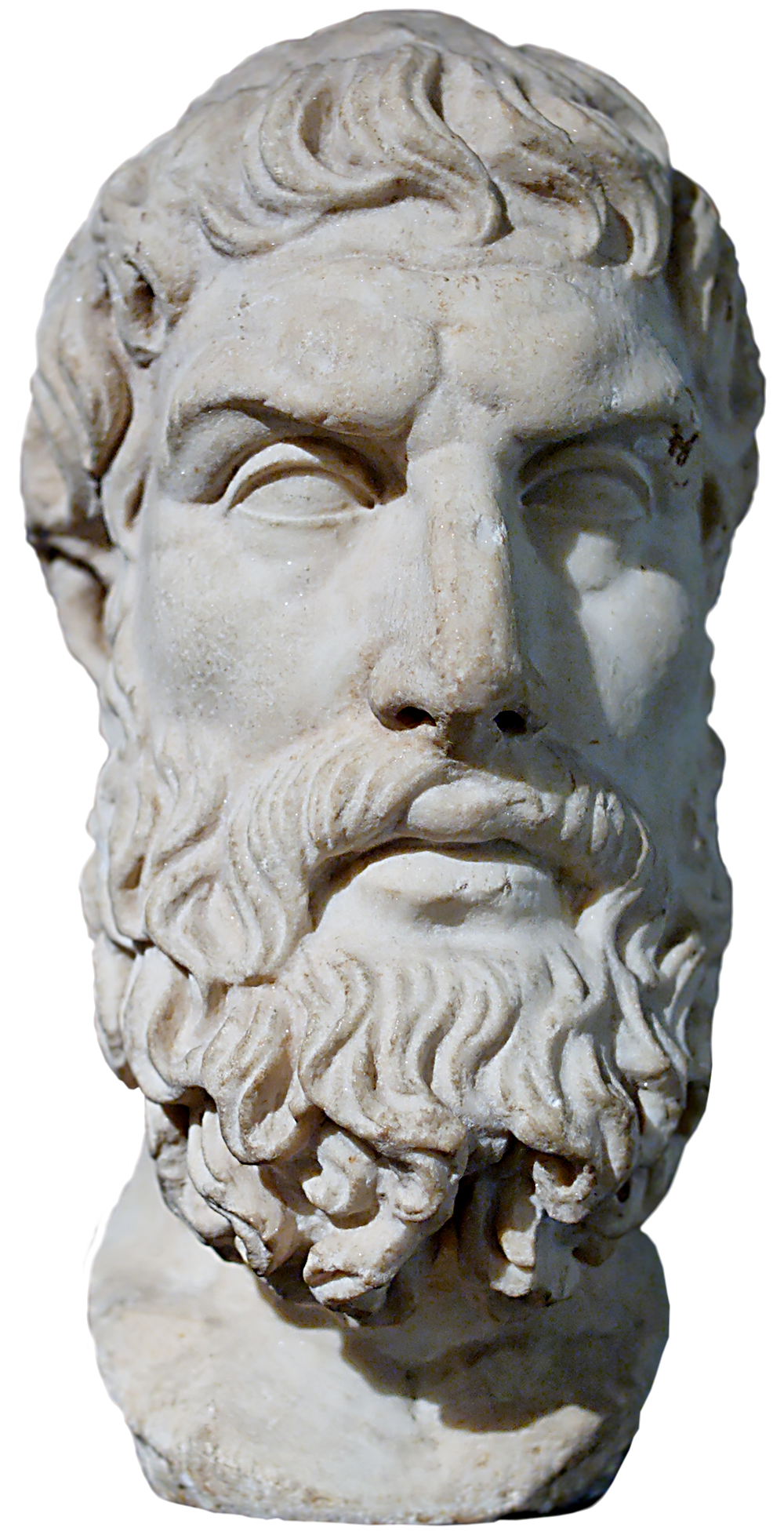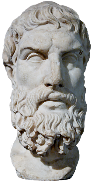 Objekts: Epikūrs no Samas. Marmors. Sengrieķu oriģināla romiešu kopija (II gs. p.m.ē. otrā trešdaļa).