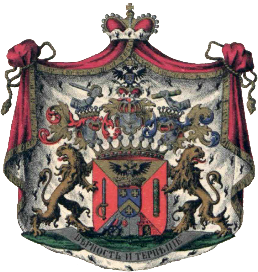 - kņazu (firstu) Barklaju de Tolli ģerbonis (Wappen von Furst Barclay de Tolly, L.E. Russ. Fürst. 30/3. 11/9. 1813.).