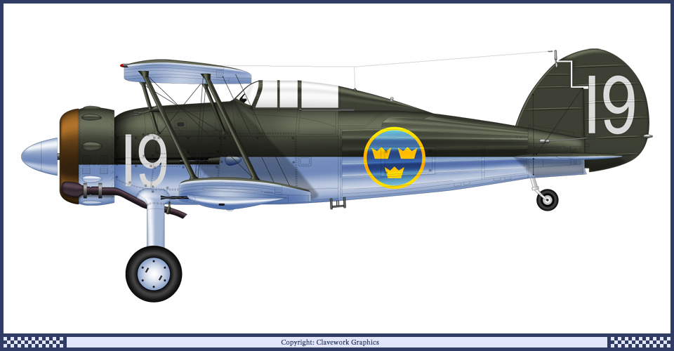 Biplāns Gloster Gladiator J 8 - Zviedrijas armijas bruņojumā 1940. gados. Avots
