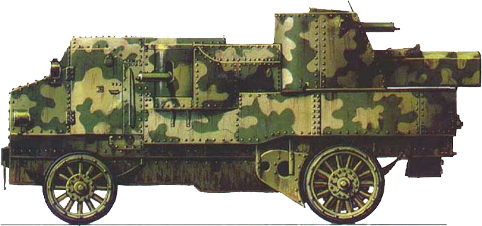 - Гарфорд-Путилов (Garford-Putilov) bruņotais automobilis Sarkanajā armijā pieņemtajā kamuflāžas krāsojumā. Rekonstrukcija.