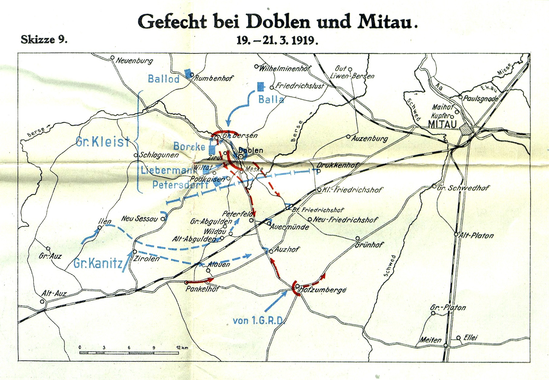 Avots: Darstellungen aus den Nachkriegskämpfen deutscher Truppen und Freikorps. 2 Bd.: Der Feldzug im Baltikum bis zur zweiten Einnahme von Riga. – Berlin, 1937