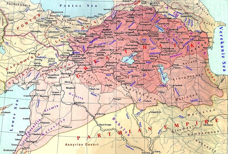 Lielās Armēnijas karte. Avots:http://www.tacentral.com/history/images/Map3rd-1stBCE.JPG