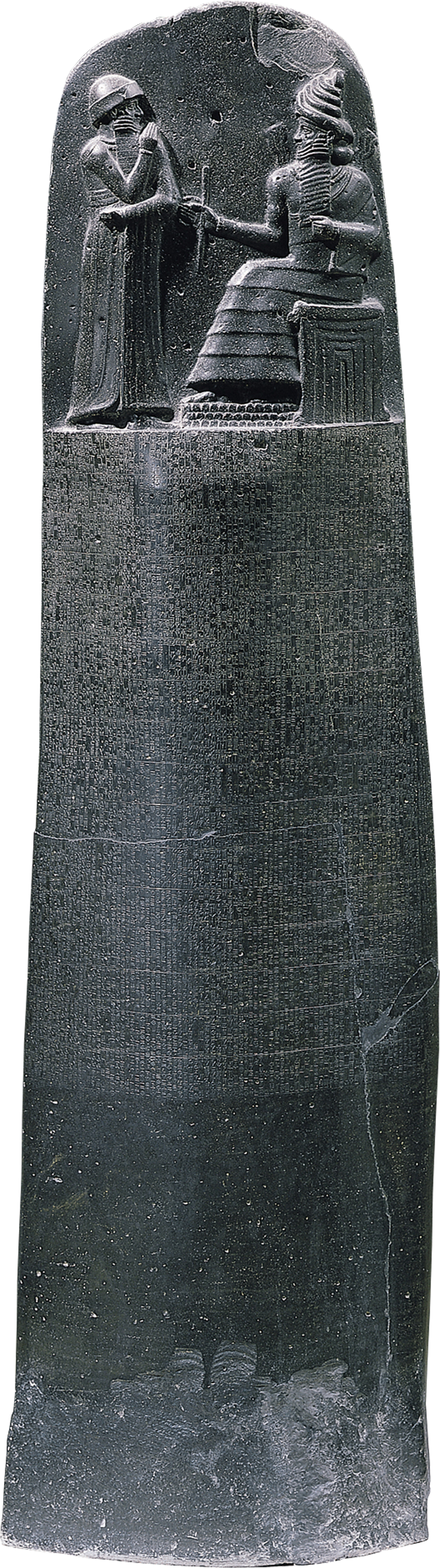 Stele of Hammurabi, from Susa (modern Shush, Iran). c. 1792-1750 BCE. Basalt, height of stele approx. 7' (2.13 m), height of relief 28" (71.1 cm). Musée du Louvre, Paris.