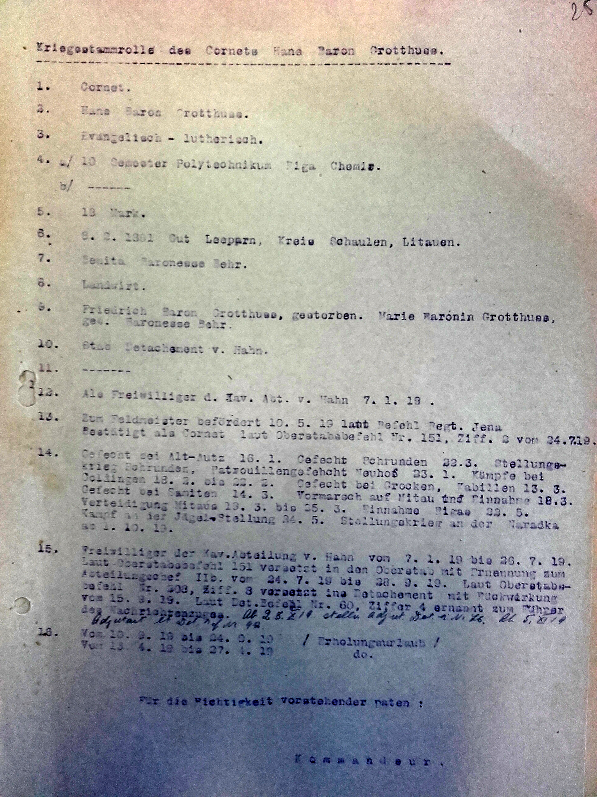 - Baltijas landesvēra virsnieka Hansa fon Grothusa izziņa ar biogrāfijas datiem.