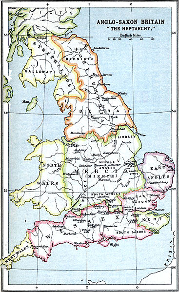 Anglo-Saxon Britain "The Heptarchy". Place Names: Kent, Mercia, Northumbria, Strathclyde, Wales, Wessex. No: http://etc.usf.edu/maps/pages/1700/1784/1784.htm