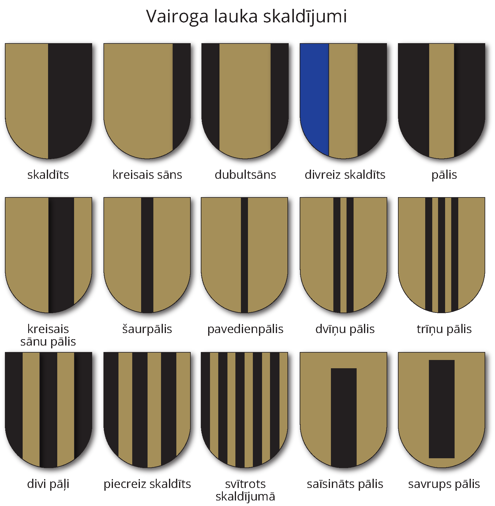 - Heraldiskā vairoga skaldījuma pamatgriezumi.