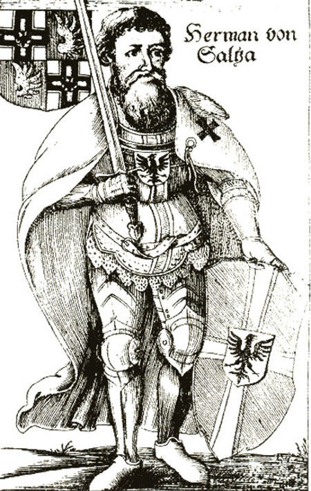 Teitoņu ordeņa lielmestrs Hermanis fon Zalca (Hermann von Salza, 1209.-1239.). Attēls no: http://www.ostpreussen.net/daten/ostpreussen/module/data/bilder/26/26020802g.jpg