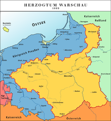 Varšavas hercogiste (pol. Księstwo Warszawskie) no 1807. līdz 1815. gadam. Karte ņemta no: Karte des Herzogtums Warschau 1809. / Map of the Duchy of Warsaw 1809; Putzger – Historischer Weltatlas, 89. Auflage, 1965