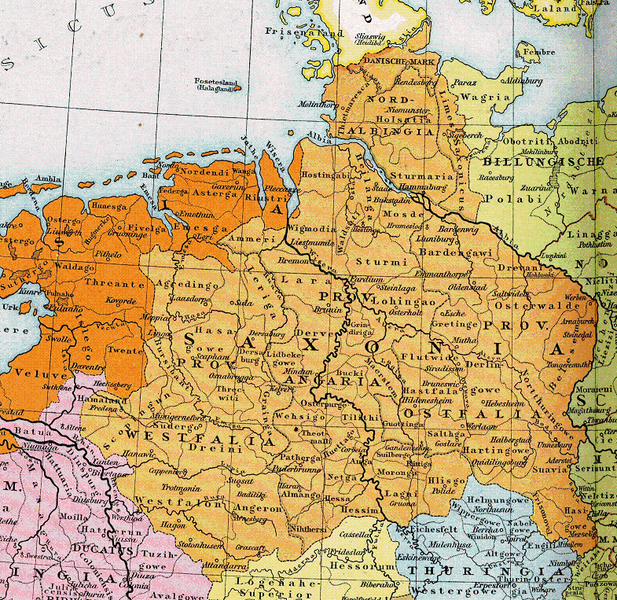 Heiliges Römisches Reich um 1000, Herzogtum Sachsen. Allgemeiner historischer Handatlas, 1886.