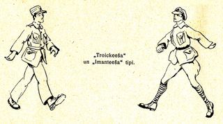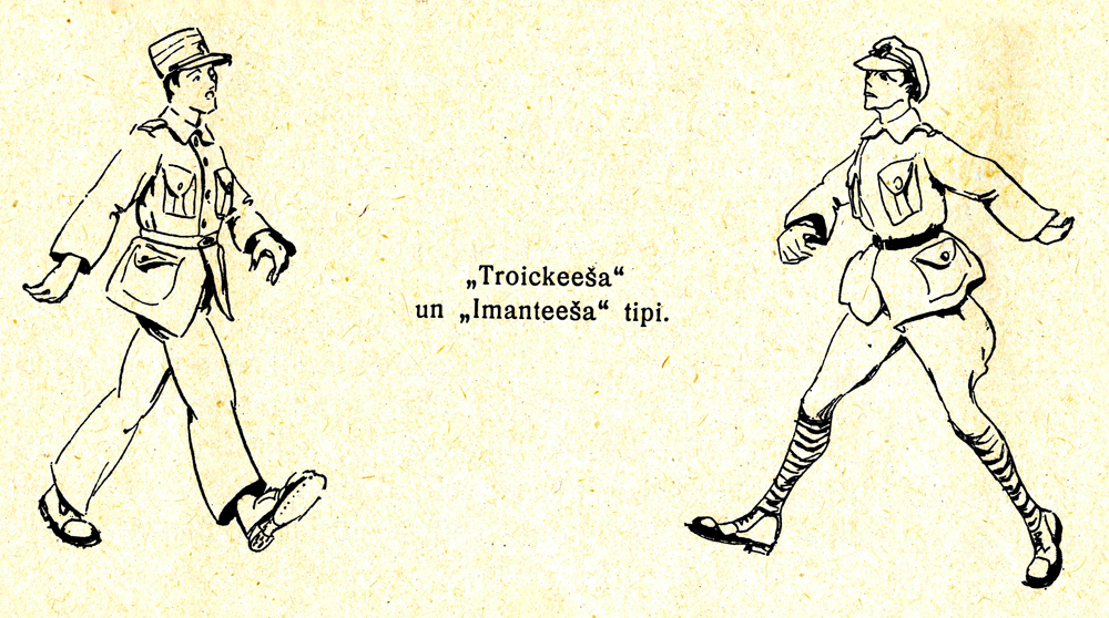- Imantas pulka (pa labi) un Troickas bataljona (pa kreisi) karavīri pašu zīmētā karikatūrā. 1920. gads.
