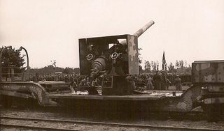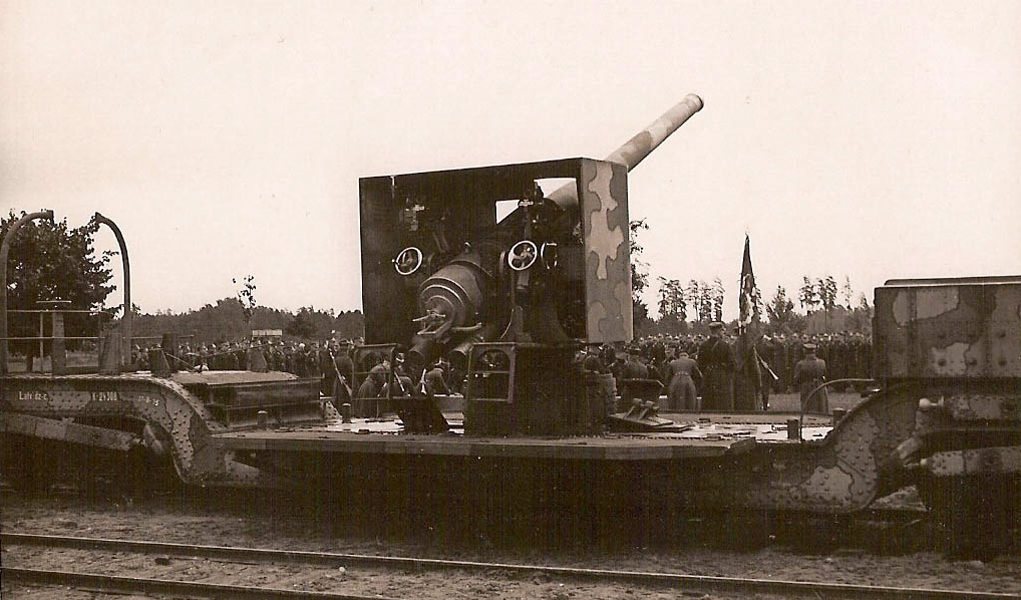 - Kanē lielgabals uz dzelzceļa platformas.