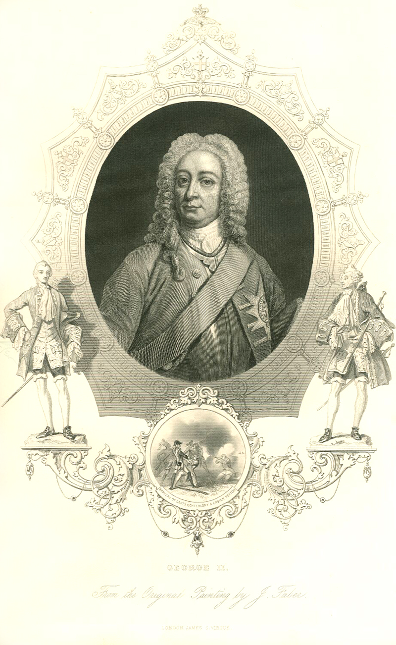 Džordžs II (George II, King of Great Britain and Ireland, Elector of Brunswick-Lüneburgr, 1683.-1760.), Velsas princis (1714.-727.) - Attēls no: Tobias Smollett. The History of England in Three Volumes, Vol.II. From William and Mary to George II.