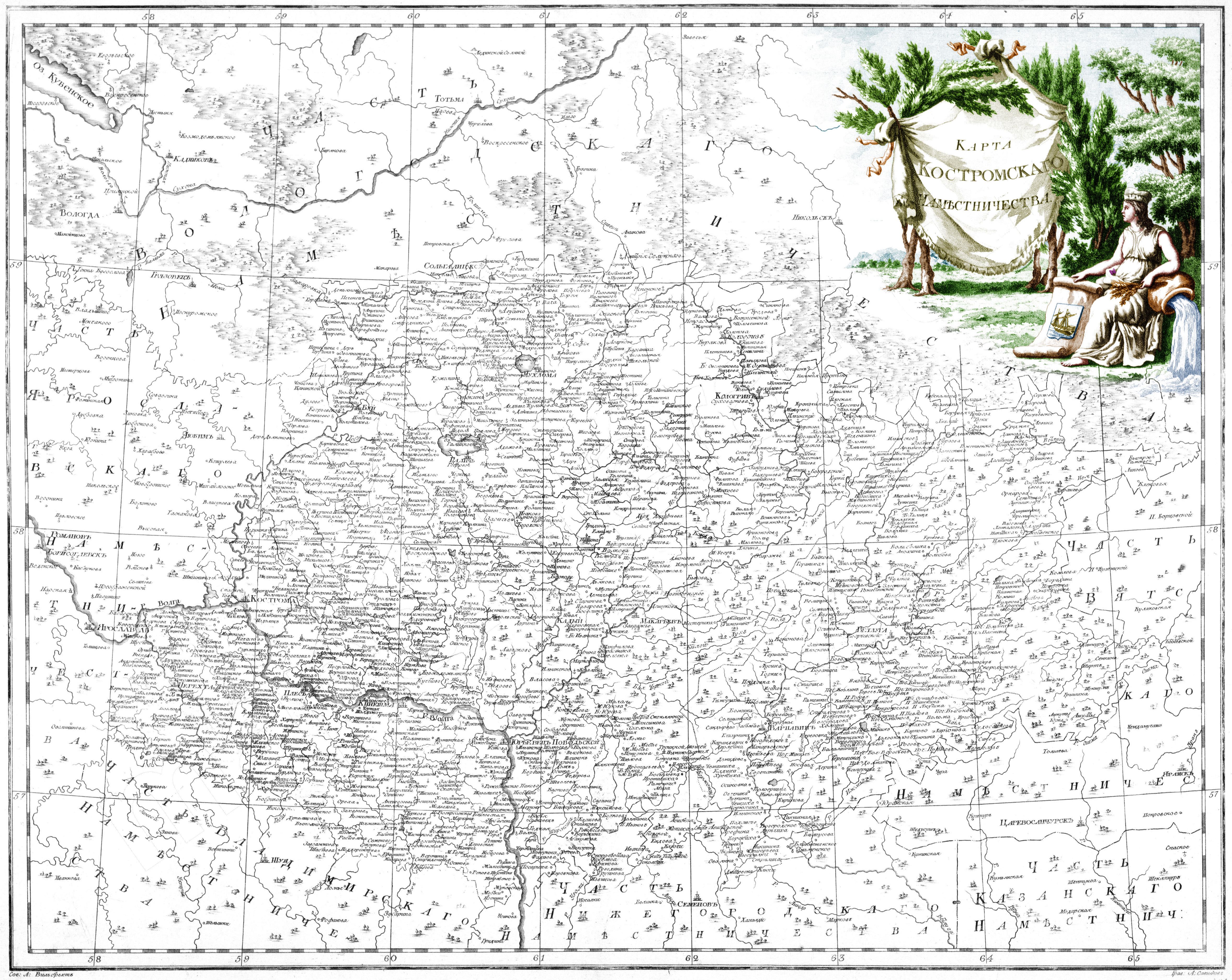 Kostromas vietniecības karte (1792.). Avots: http://www.redkie.ru/map/Kostr_1792.jpg