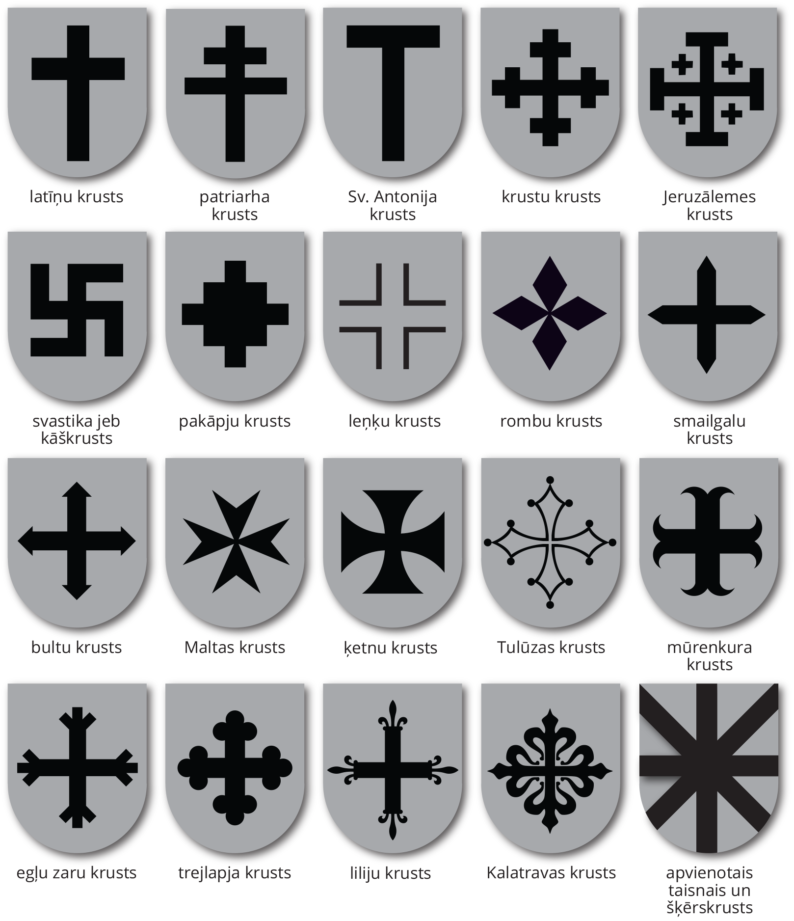 - Dažas populārākās nehereladiskās figūras: izplatītākās krustu formas.
