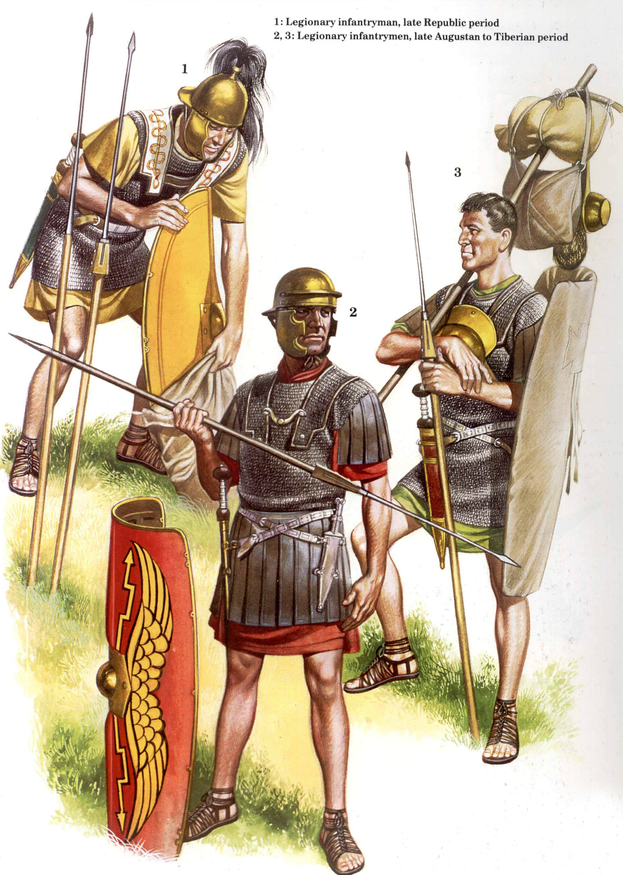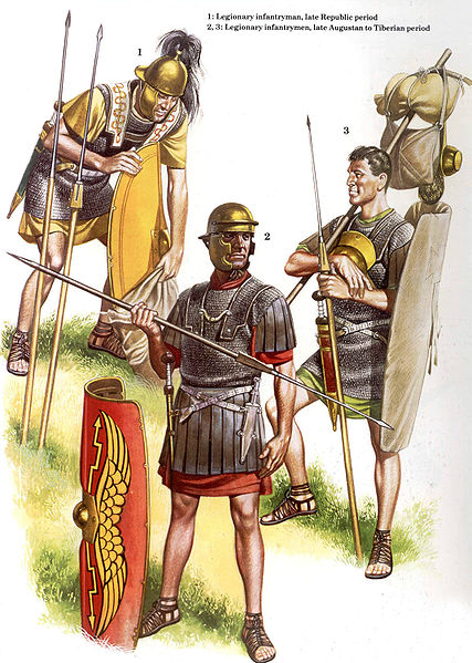 Romas leģionāru ietērps vēlīnās republikas un impērijas sākuma laikā.