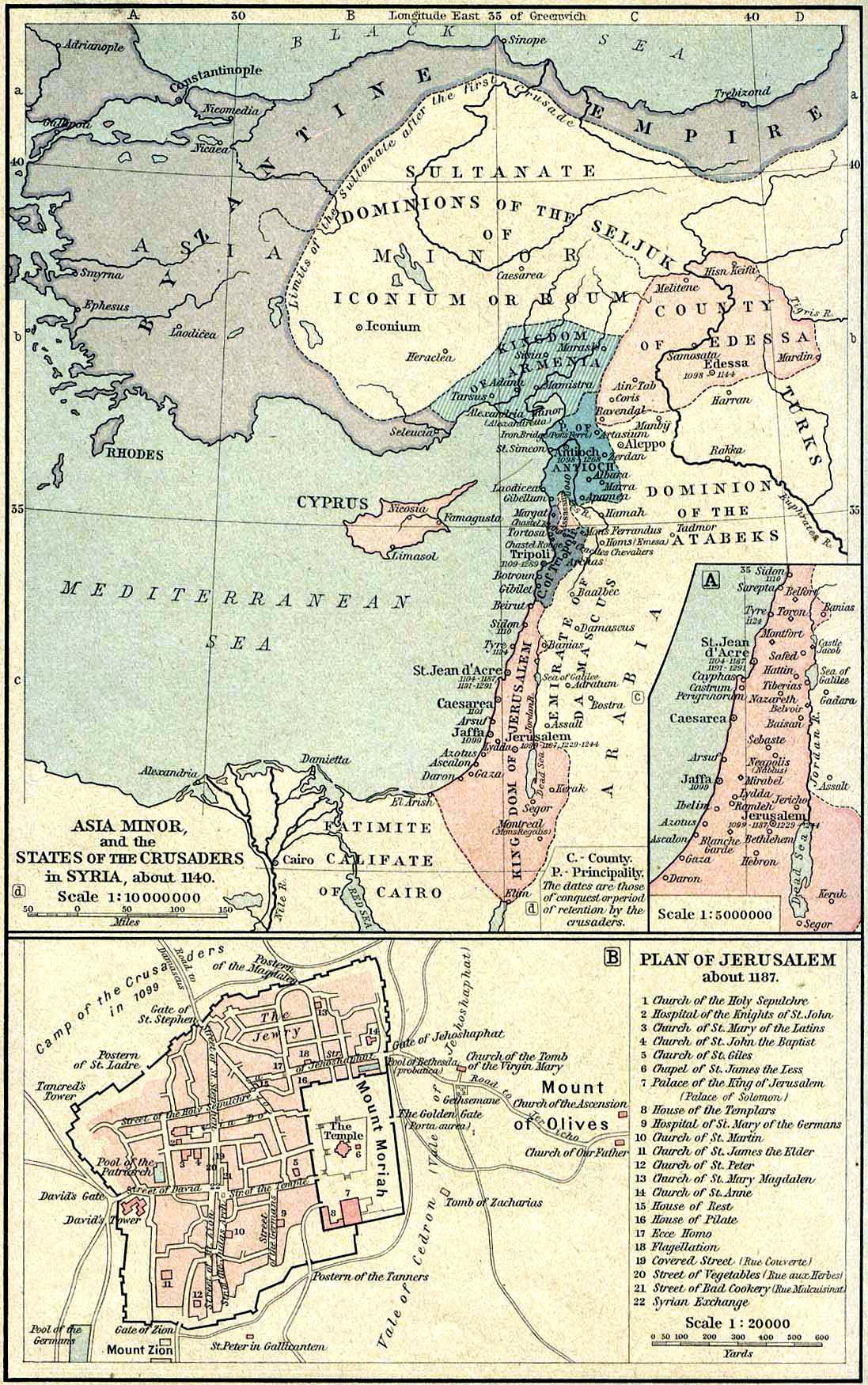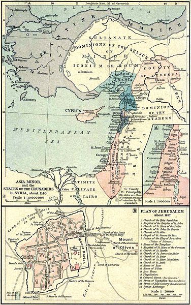 Krustnešu valstis Levantē ap 1140. gadu. Attēls no: Historical Atlas by William R. Shepherd, 1923.-26.