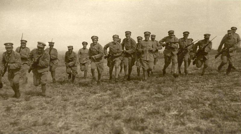 - Troickas (1. atsevišķā Latvijas strēlnieku) kareivji lauka mācībās. Krasnojarska
