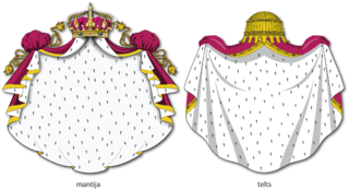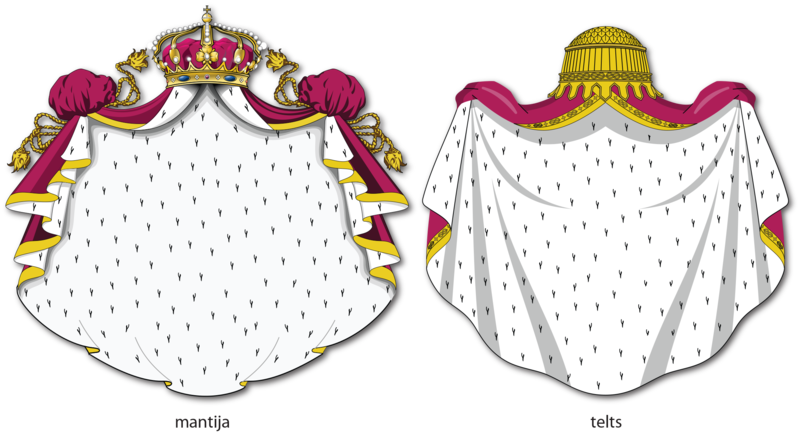 - Heraldiskā mantija un telts.