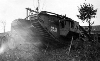 Viens no ilgāk ekspluatētājiem Latvijas Republikas Bruņoto spēku "Mark V" tipa tankiem ar nosaukumu "Ministru prezidents Ulmanis" paraugdemonstrējumu laikā. Divdesmito gadu sākums. Fotogrāfs nezināms.