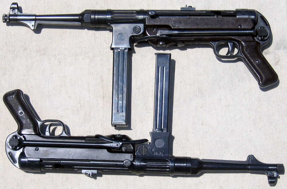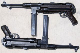 Vērmahta spēkos 2. Pasaules kara laikā izmantotā mašīnpistole MP38 (Maschinenpistole 38).