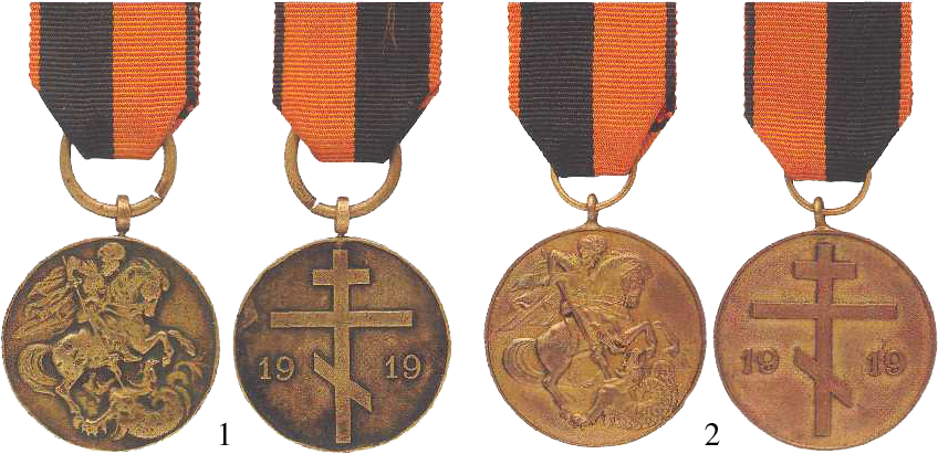 Rietumu brīvprātīgo armijas piemiņas medaļa. Apstiprinājis 1920. gadā Pāvels Bermonts-Avalovs. Divi veidi: