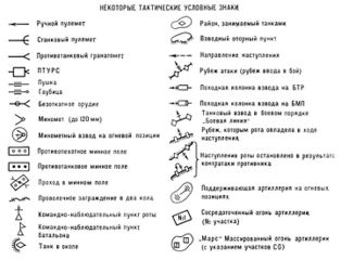 Daži PSRS militārajā kartogrāfijā pieņemtie taktiskie simboli.