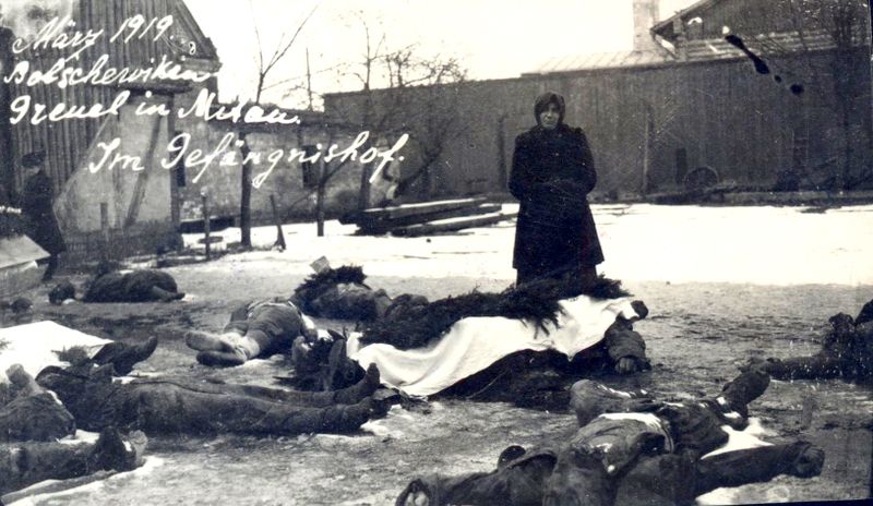 - Mītavas (mūsd. Jelgava) cietuma pagalms. Latviešu lielinieku nogalinātie vācbaltieši.