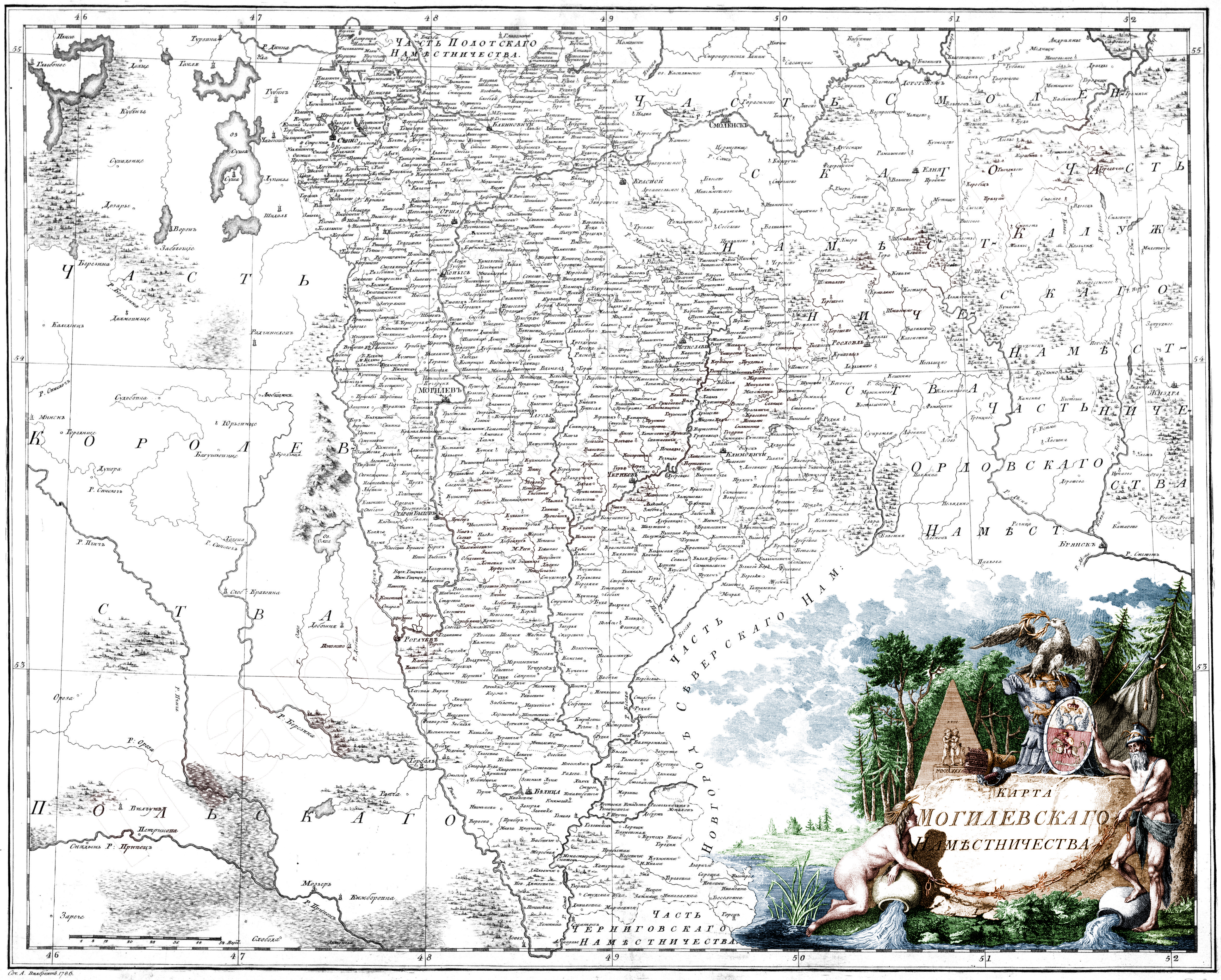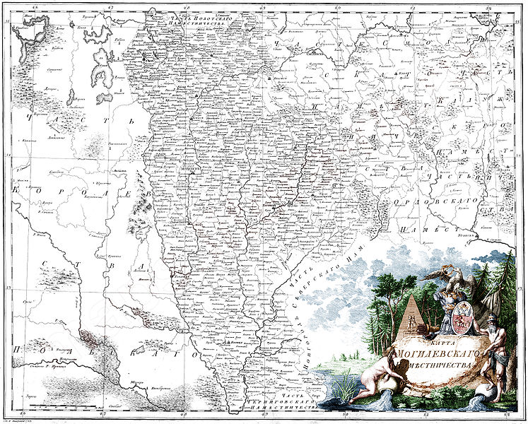 Mogiļevas vietniecības karte (1792.). Avots: http://www.redkie.ru/map/Mog_1792.jpg