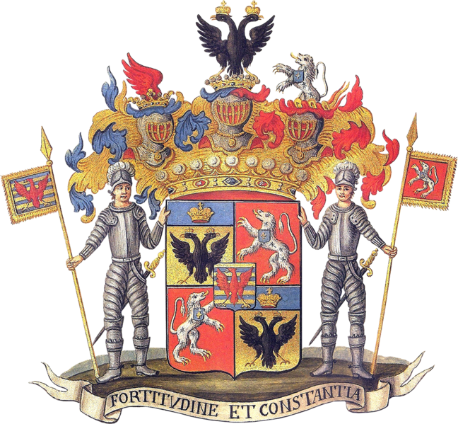- grāfu Orlovu ģerbonis (графы Орловы; vc. Graf Orlow. L. E. K. Reichs Graf 22.9.1762.).